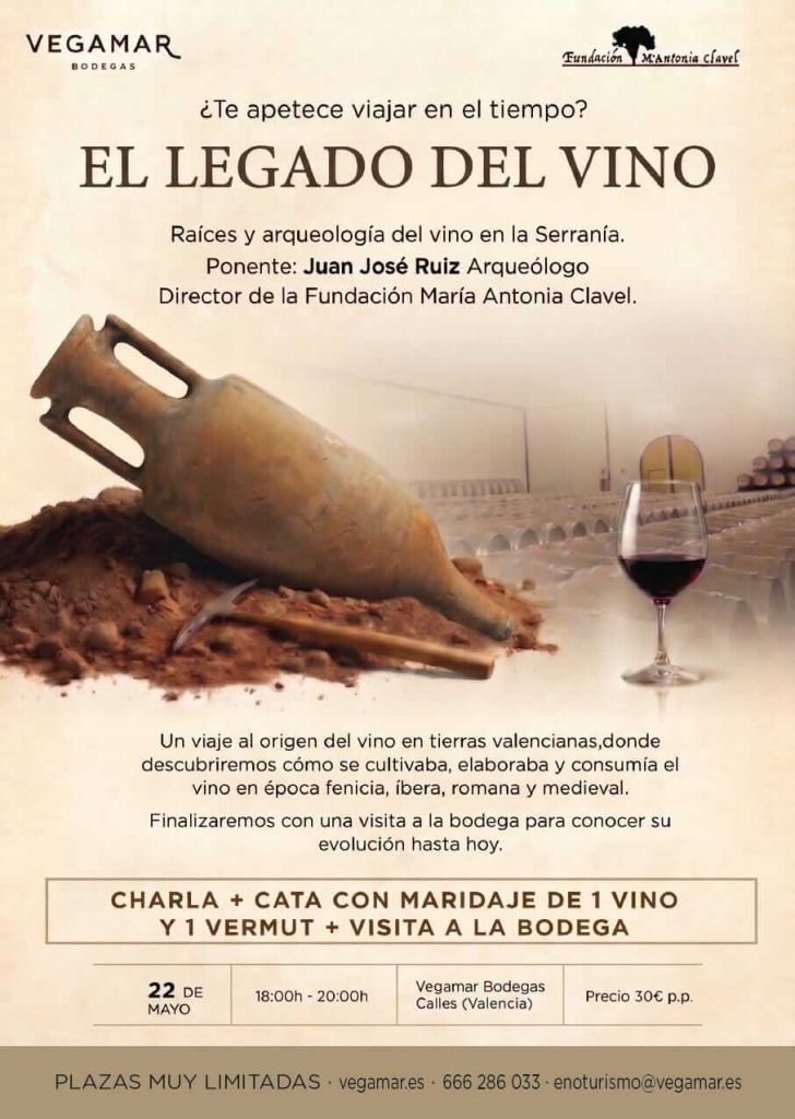 ℹ️ Un viaje al origen del vino en tierras valencianas , donde descubriremos cómo se cultivaba, elaboraba y consumía el vino en época fenicia, íbera, romana y medieval.